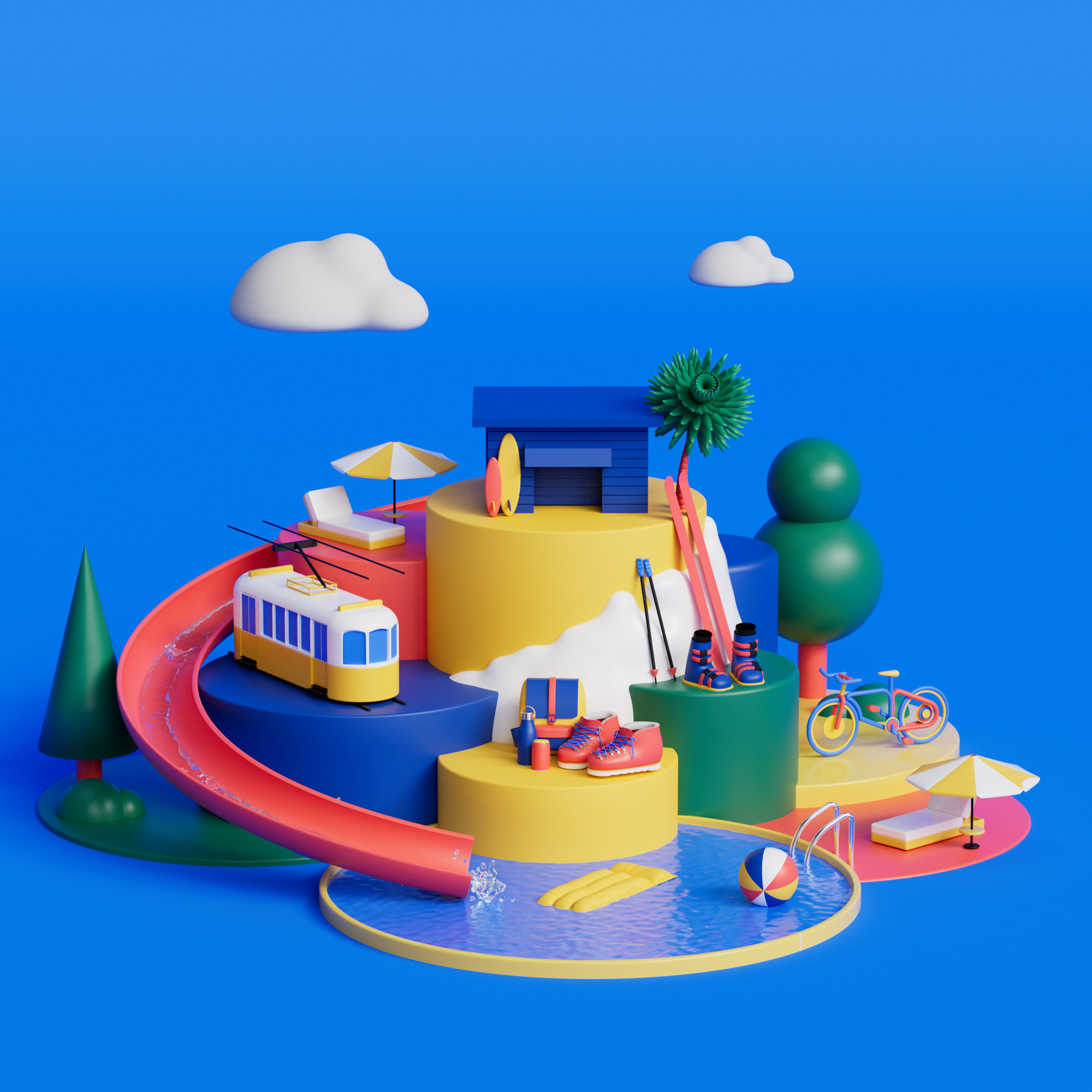 Separating the different types of holidays on plinths allowed Craig to work with micro compositions as part of a bigger compositions without becoming too busy.