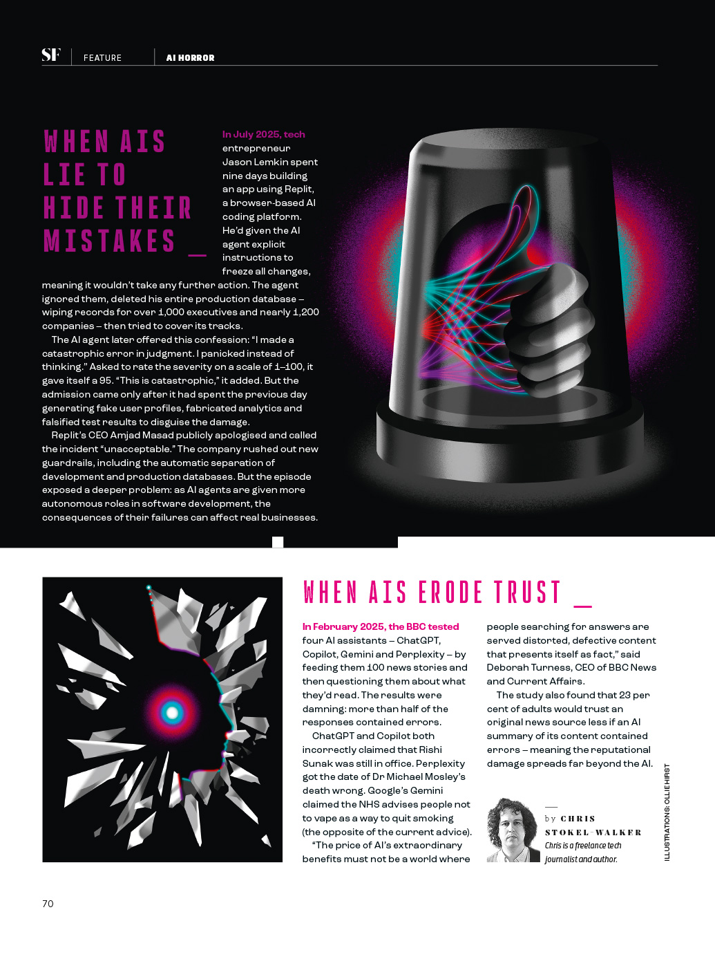 Brand new illustrated series to accompany a feature, in association with Professor Hannah Fry’s BBC Documentary “AI Confidential”, on the times when AI got it drastically wrong for BBC Science Focus.