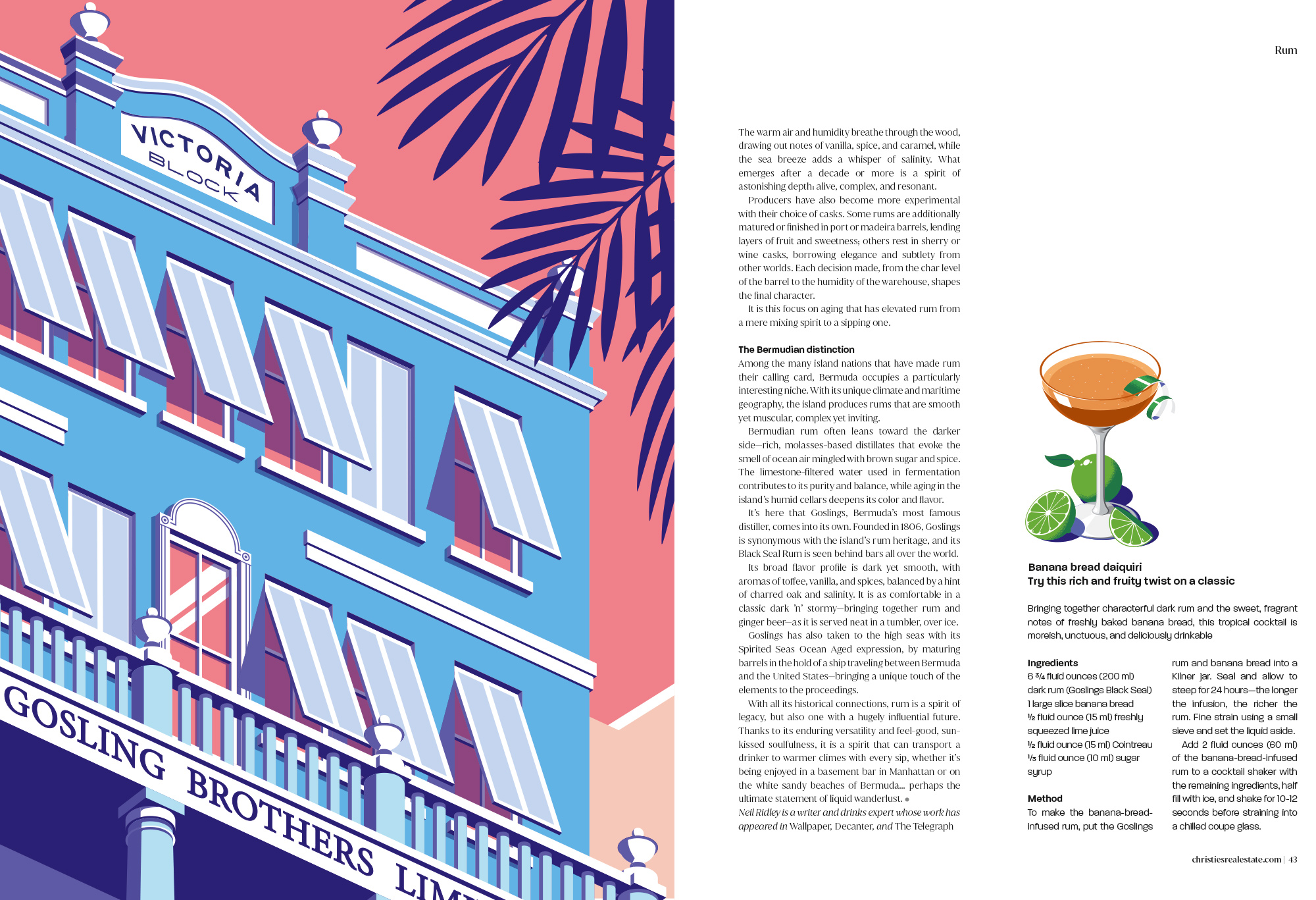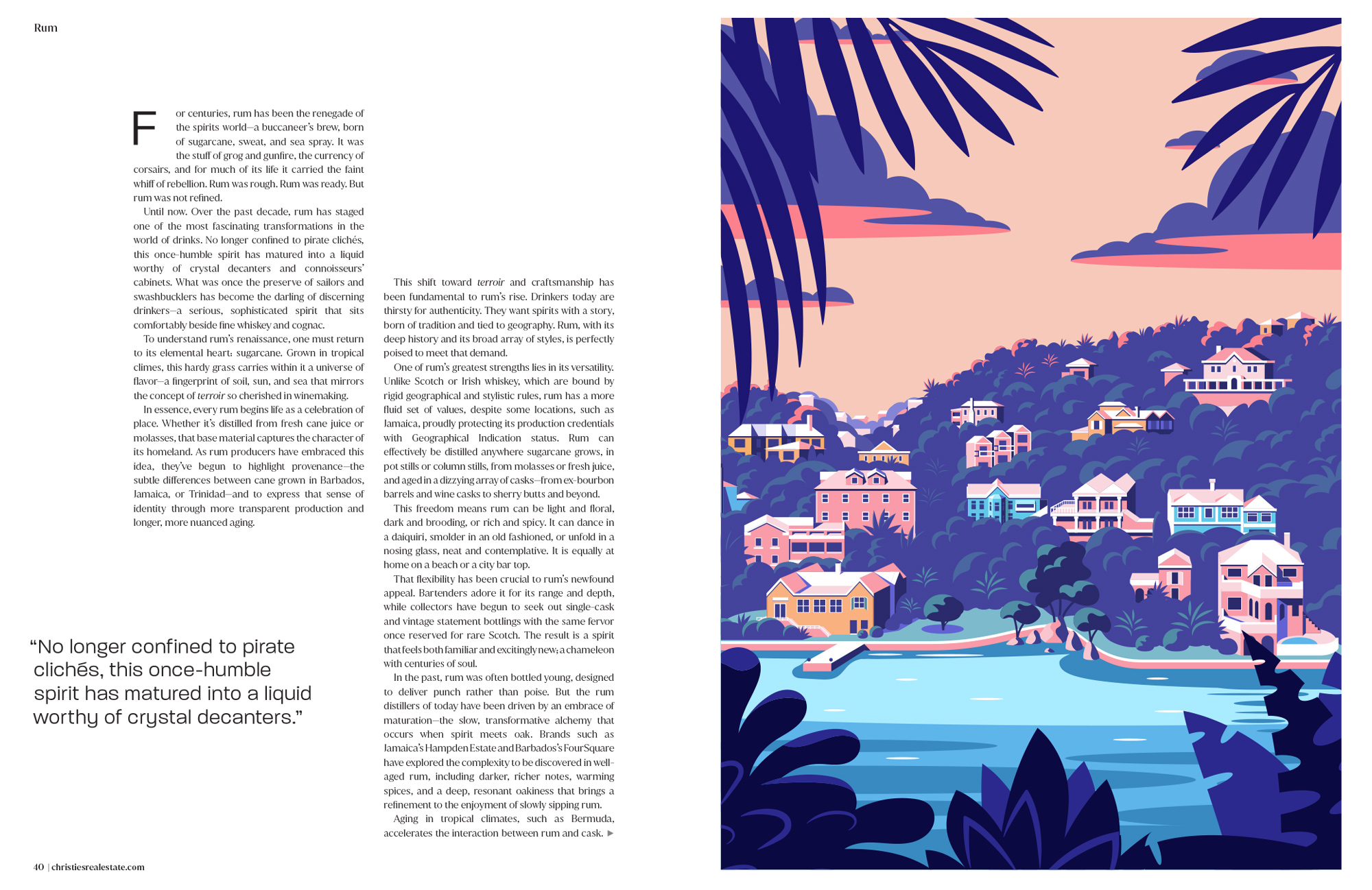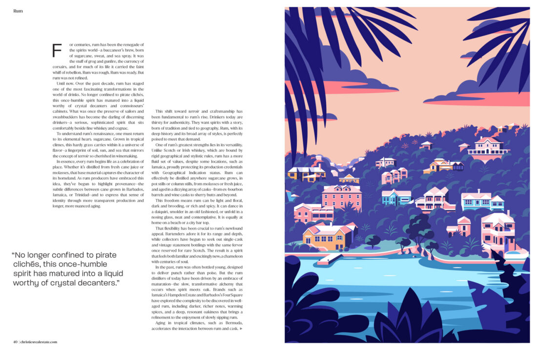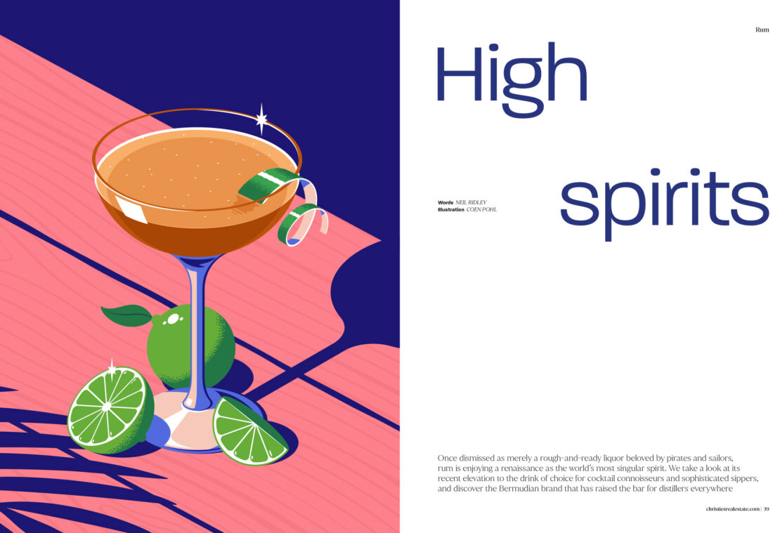 Brand new work for Christie’s Real Estate Magazine – Coen was tasked with creating a series of lifestyle illustrations focused on rum, which is currently enjoying a renaissance as the drink of choice for cocktail connoisseurs and sophisticated sippers.