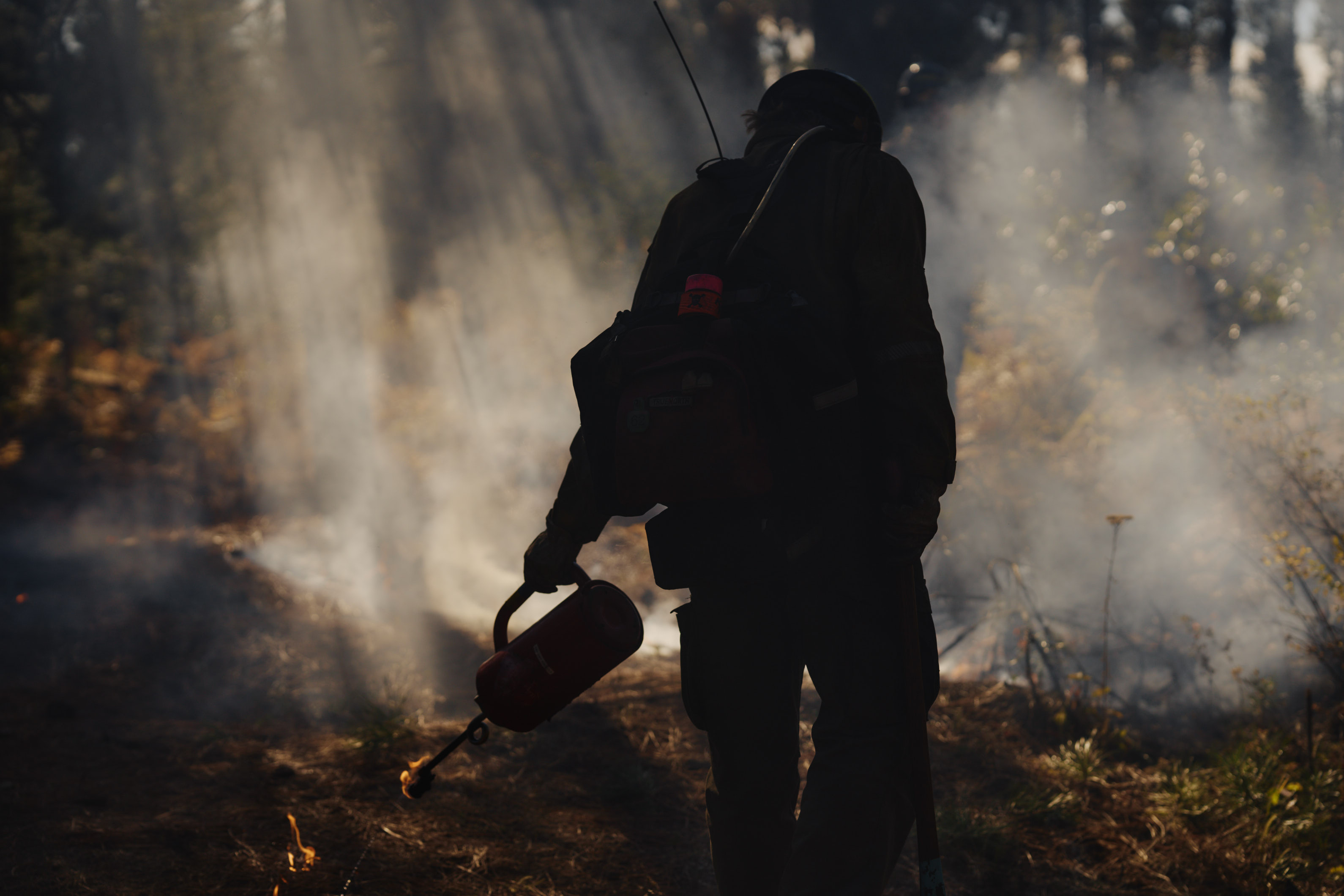 I accompanied Columbia Land Trust in Washington’s East Cascades to document the process of a prescribed burn. These burns help to restore the ecological growth in the forests and help to prevent future wild fires. What I expected to see was the burning of small shrubs and grasses, things that would fuel the beginnings of a forest fire, in order to clear out the underbrush below the tall pines. I admit, I was a little naive going into it. Once the professionals stepped in and began to systematically ignite the forest with their drip torches, the entire forest filled with sun streaked smoke and orange flames. Truly amazing to witness not only the heat and power of a fire like that, but to also see how precisely the fire workers could direct the fire to keep it contained and safe.