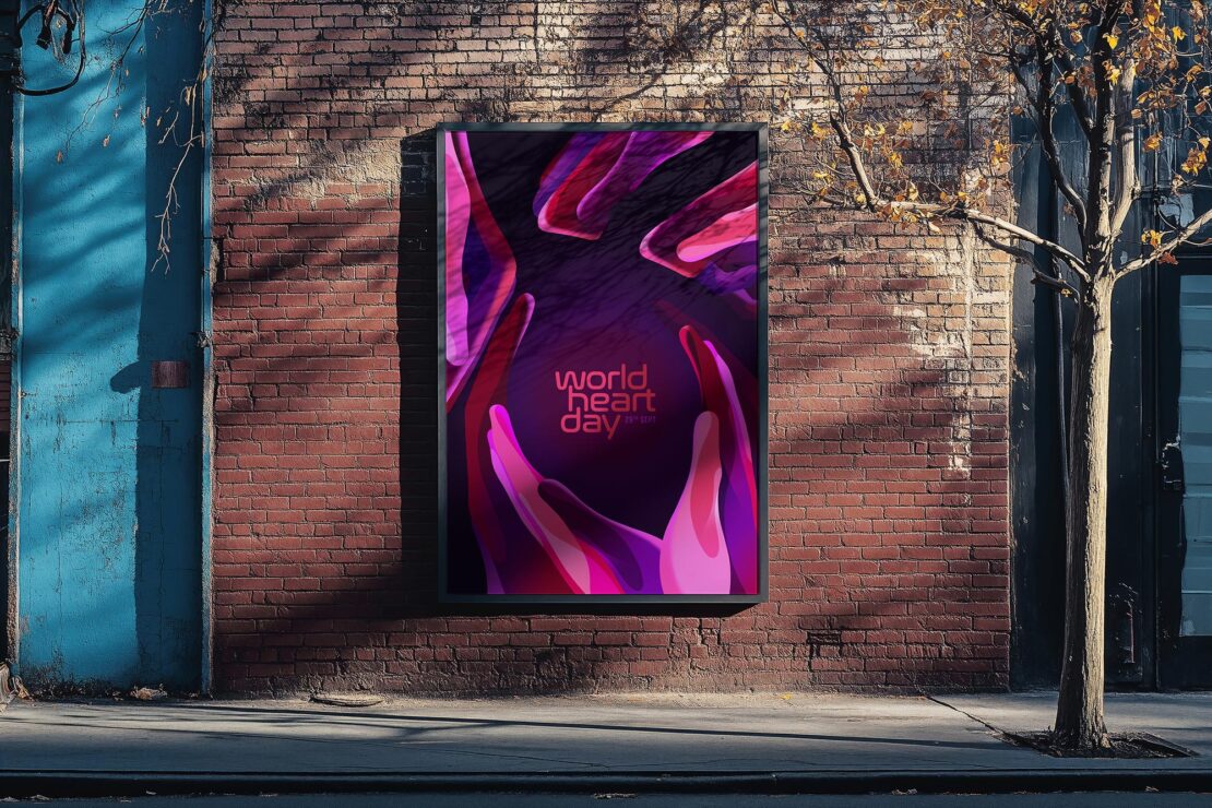 Here, the many “hands” create the silhouette of a human heart in the negative space.