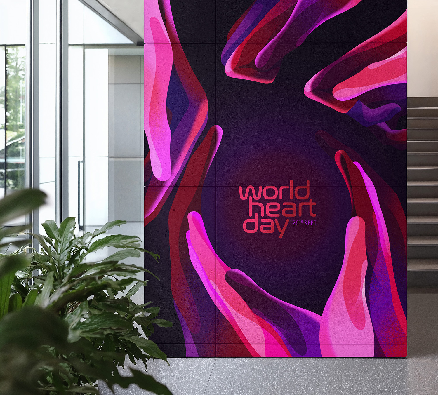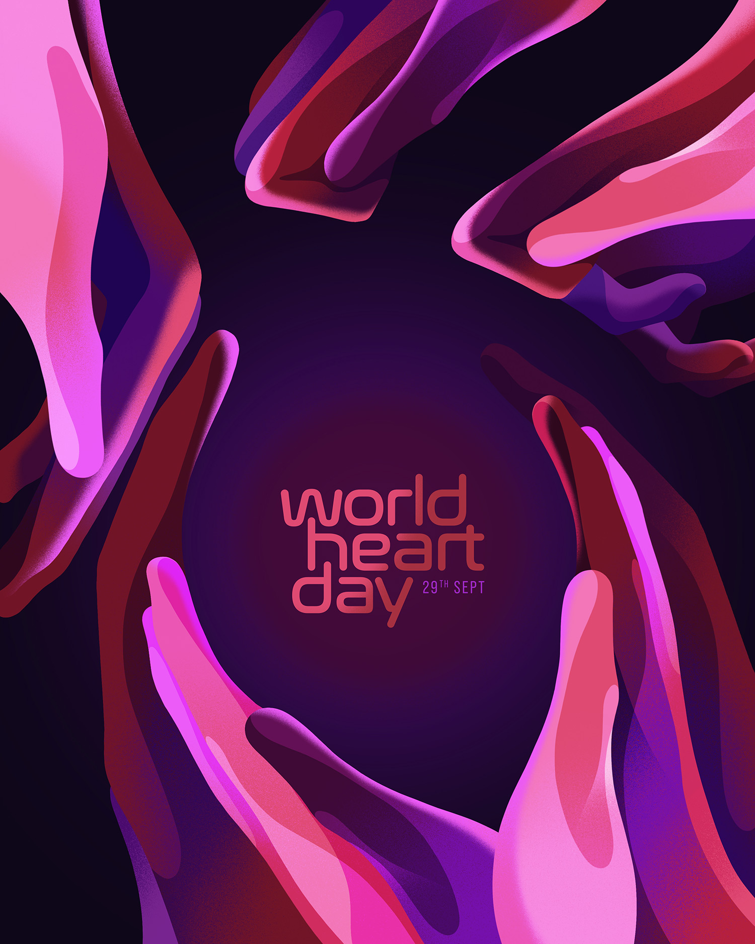 Here, the many “hands” create the silhouette of a human heart in the negative space.